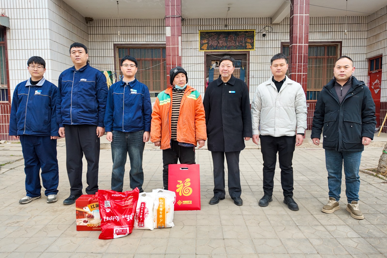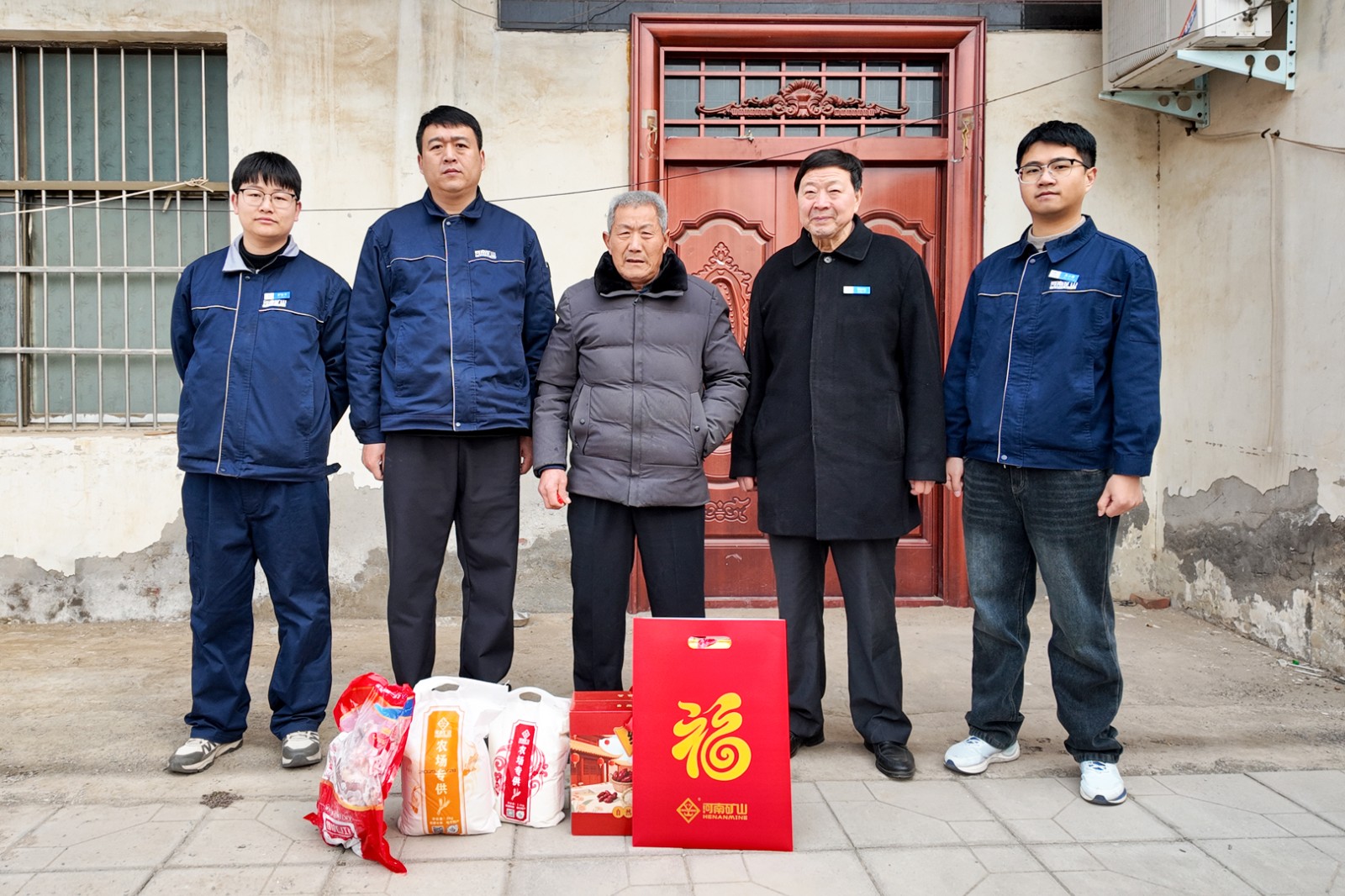 慰问小组代表河南矿山党委书记崔培军及全体员工,为每户送去10斤猪肉、1袋小米、1袋粘面、1箱粉条、1幅年画等五件节日慰问品,并向他们致以诚挚的新春祝福与深切关怀。